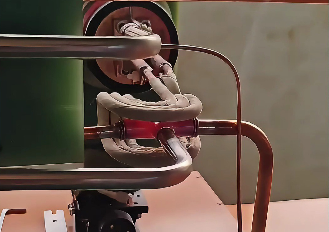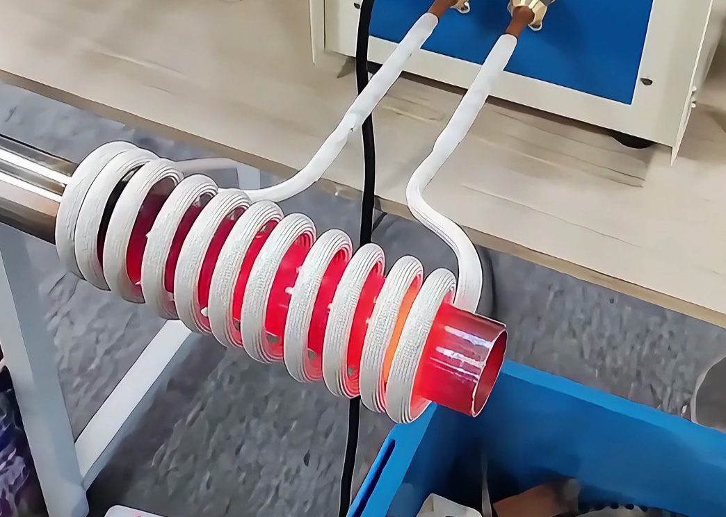 您現在看到的就是不銹鋼管退火現場。機械夾具傳送鋼管到指定位置,兩臺高頻加熱機同時對鋼管兩頭進行加熱退火,加熱完成后自動下料,整個過程完全自動化生產。